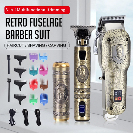 Surker Full metal professional hair clipper combo kit barber cordless SK-660F