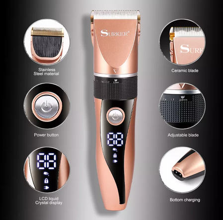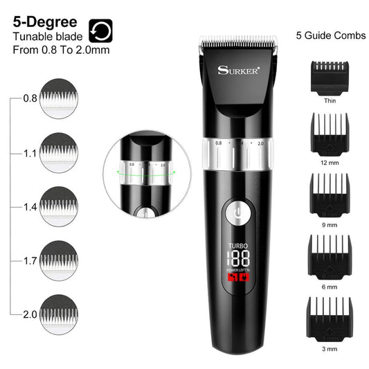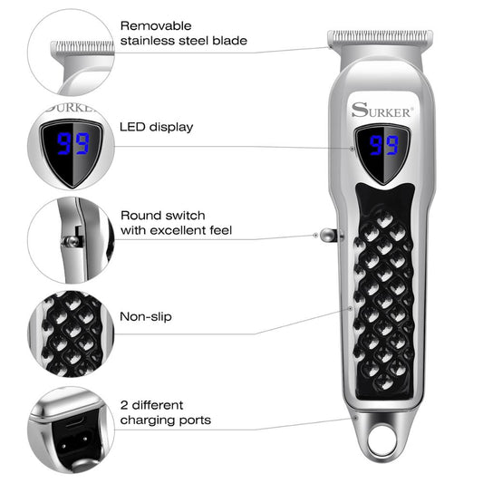 Surker Professional Digital Hair Trimmer Men's Rechargeable ElectricCordless N°669