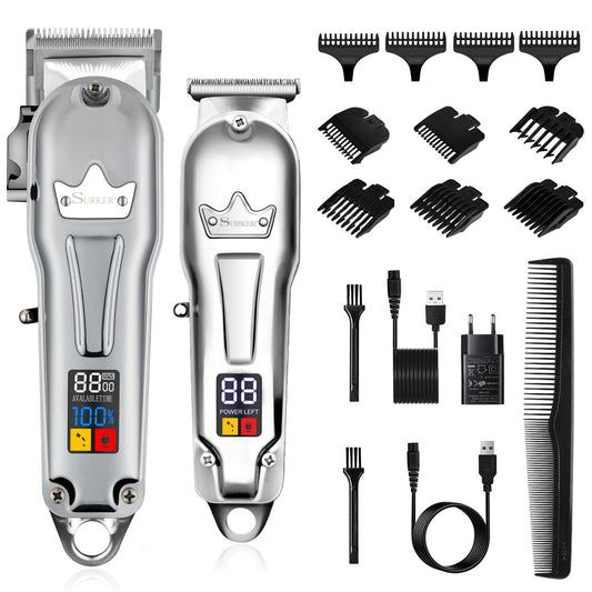 Surker Professional Hair clipper Mens Hair Cutter SET 2 Machine Electric Cordless Hair Trimmer for Barber USB Charging