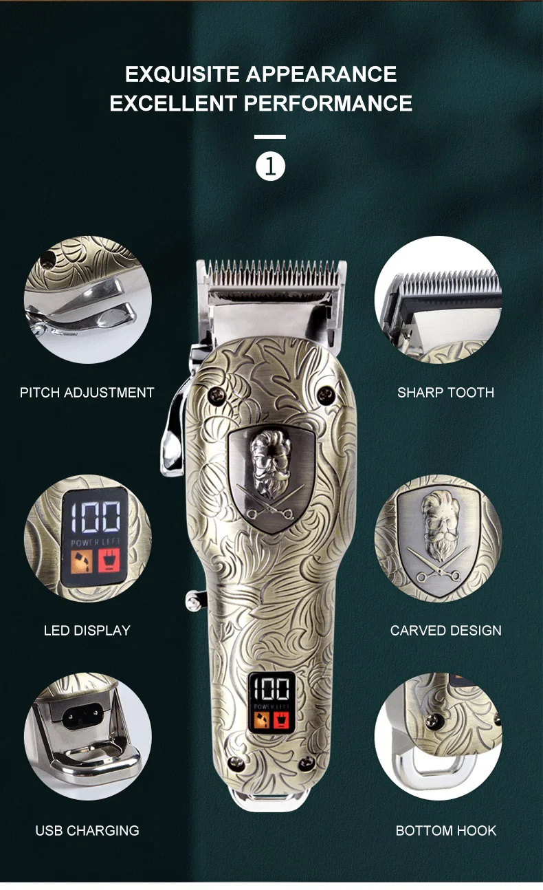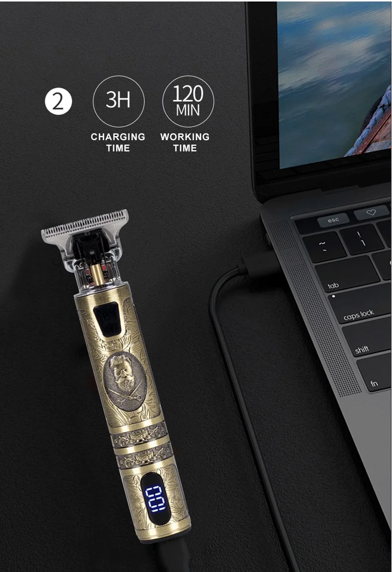 · USB Quick Charge & LCD Display : Built in a high quality 2000mAh Li-ion battery of hair clipper, delivers up to 210 minutes run time by 3.5 hours charge time.Built in 1400mAh Li-ion battery of T-shaped trimmer, delivers up to 120 minutes run time by 2.5 hours charge time.Digital LCD display clearly shows remaining power percentage/oiled indicator/charging indicator